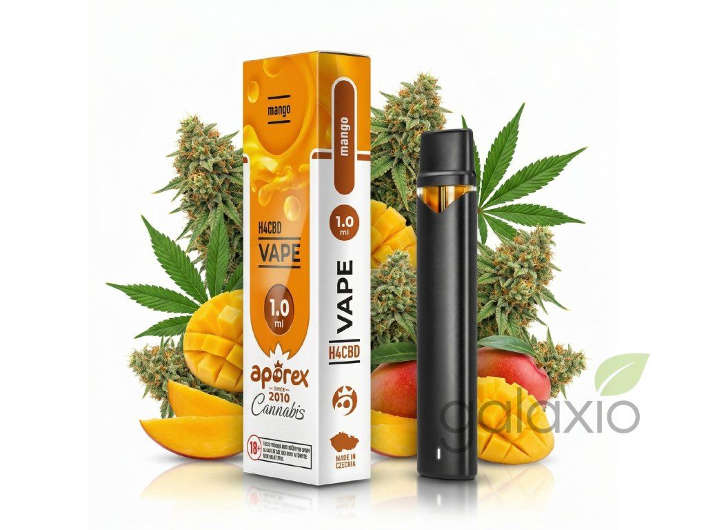 APOREX H4CBD VAPE – MANGO 1 ml | kompaktní H4CBD jednorázovka s tropickou příchutí manga APOREX H4CBD VAPE – MANGO 1 ml je moderní jednorázové vaporizační pero Cilicon ELEV AIR1, které spojuje spolehlivou technologii, kapesní formát a H4CBD destilát nejvyšší kvality z USA doplněný českým mangovým aromatem. Díky objemu 1 ml, možnosti dobíjení a přibližně 300 potahům představuje ideální H4CBD vape řešení pro každodenní použití bez nutnosti doplňování náplně či výměny cartridgí. H4CBD destilát bez ředidel – jednoduché a přehledné složení Zařízení je plněno H4CBD destilátem bez přidaných ředících roztoků typu PG, VG a dalších nosičů, což ocení uživatelé preferující co nejjednodušší a transparentní složení.
