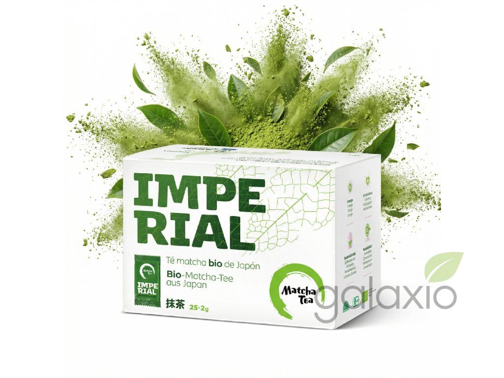 Bio Matcha Tea Imperial je kvalitní japonský zelený čaj matcha v bio kvalitě, balený do 25 kusů 2g sáčků. Sklízí se v oblasti Shizuoka a jedná se o ideální mezistupeň mezi variantami Harmony a Premium. Nabízí jemnější chuť než Harmony a výraznější než Premium, skvěle se hodí pro čisté popíjení i dochucování. Matcha je unikátní tím, že konzumujete celý list – díky tomu získáte 10x více nutričních hodnot než u běžného zeleného čaje. Obsahuje aminokyselinu L-Theanin pro lepší soustředění, teofylin pro postupné uvolňování energie po dobu až 6 hodin, a velké množství antioxidantů, které mohou podpořit spalování až o 40%. Čaj pravidelně podléhá testování na zdravotní nezávadnost, je balený ve vzduchotěsných sáčcích, které garantují trvanlivost 24 měsíců. Doporučená denní dávka je 4–6 g pro dospělé a 2 g pro děti/těhotné. Při přípravě stačí obsah sáčku vyšejkovat s vodou do 70 °C, přidat lze ovoce, sirup nebo mléko. Vyrobeno v Japonsku, baleno v ČR. Bez známých alergenů, na lačný žaludek může způsobit nevolnost.Doplňkové parametry