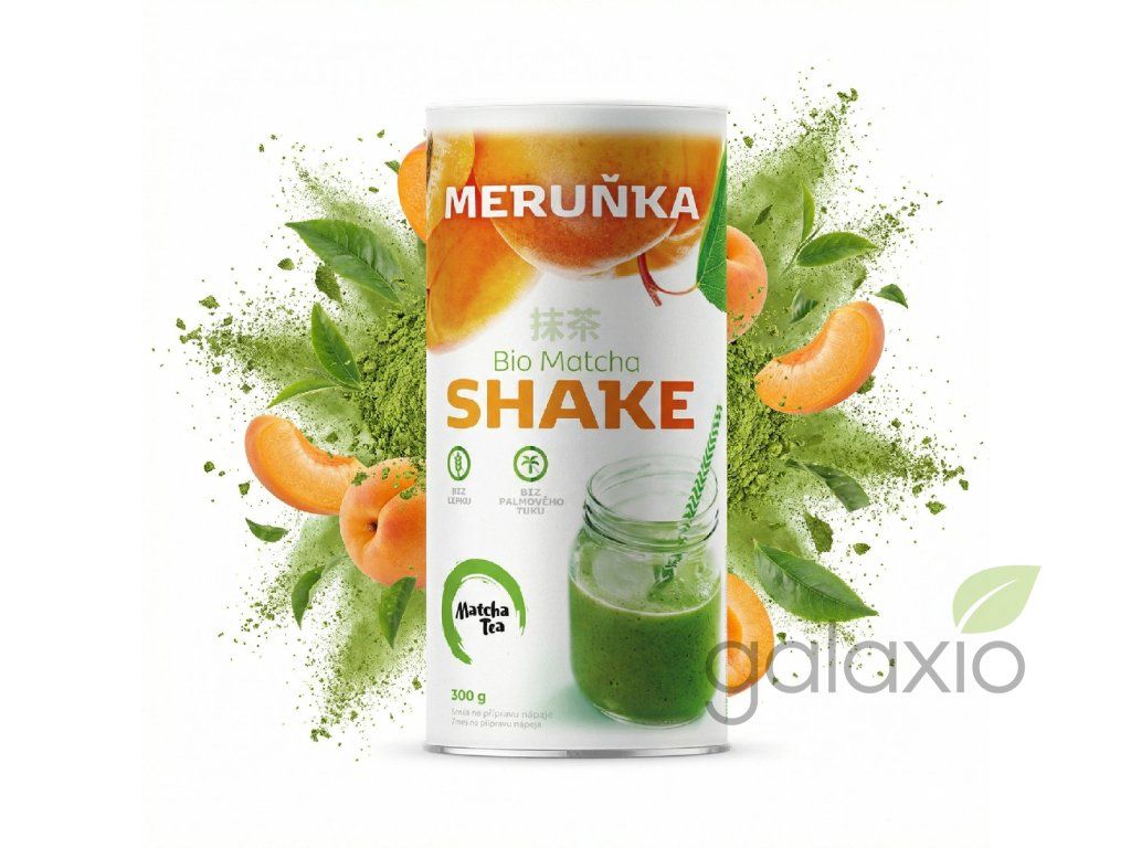 PROČ PÍT BIO MATCHA TEA SHAKE MERUŇKA? Matcha Tea shake je přírodní bioenergetický nápoj založený na čaji matcha a vyvážený složkou bio sušených meruněk. Tento snadno a rychle připravený nápoj dodá rychlou a chutnou dávku energie pro všechny školáky, sportovce a náročné profese. Úžasná chuť meruněk , vláknina, železo, bílkoviny a čistě bio suroviny jsou samozřejmostí. Oslazený je bio rýžovým sirupem, přírodním sladidlem s nižším glykemickým indexem. Oproti běžnému cukru nepřekyseluje žaludek (má vyšší pH). Bio syrovátka zlepšuje látkovou výměnu. Je bez palmového tuku a bez lepku. Japonský čaj matcha vás nabije energií, která se uvolňuje postupně po dobu 3-6 hodin! Velmi oblíbeným benefitem matcha je látka teofylin, která zvyšuje schopnost soustředění, snižuje duševní a fyzický stres a navozuje pocit uvolnění bez ospalosti. JAKÁ JE DOPORUČENÁ DENNÍ DÁVKA? Doporučená denní dávka matcha u dospělého člověka je 4-6 gramů. Těhotné, kojící a děti cca 2 gramy denně. JAK SE BIO MATCHA TEA SHAKE MERUŇKA PŘIPRAVUJE? Ideálním pomocníkem pro přípravu Bio Matcha Tea shake je šejkr , popřípadě uzavíratelná láhev. Pro studenou variantu stačí nasypat do šejkru 2 polévkové lžíce nápoje v prášku, zalít 2 dl studené vody a pořádně protřepat. Pokud upřednostňujete teplou variantu, zalijte shake horkou vodou o teplotě max. 60 °C a protřepejte. Matcha Tea má širokou nabídku šejkrů, které jsou certifikované pro styk s potravinami a neobsahují žádné nežádoucí látky, jako jsou například BPA. JAK BIO MATCHA TEA SHAKE MERUŇKA SKLADOVAT? Samotný tubus zvládne shake ochránit dokonale. Stačí ho jen skladovat na suchém a chladném místě, mimo přímé sluneční záření. JAKÁ JE TRVANLIVOST PRODUKTU? Trvanlivost Bio Matcha Tea shake meruňka je 12 měsíců. OBSAHUJE BIO MATCHA TEA NĚJAKÉ ALERGENY? JSOU NĚJAKÁ RIZIKA SPOJENÁ S KONZUMACÍ ČAJE? Bio Matcha Tea shake meruňka obsahuje syrovátku, a tedy i laktózu. U čaje samotného nejsou známy žádné alergeny. Bio Matcha Tea shake neobsahuje lepek, palmový tuk a je bez rafinovaného cukru. KDE SE PRODUKT VYRÁBÍ? Původ Bio Matcha Tea je v Japonsku. Výroba a balení probíhá v ČR. SLOŽENÍ VÝROBKU: bio sušený rýžový sirup, bio sušená syrovátka , bio sušené odstředěné mléko , bio mletý zelený čaj matcha (4,4 %), bio sušené meruňky (4,1 %), zahušťovadlo: xanthan, přírodní aroma, protispékavá látka: vinany draselné Bio Matcha Tea shake neobsahuje lepek, palmový tuk a je bez rafinovaného cukru. Nežádoucí účinky/alergeny: obsahuje syrovátku a mléko.Doplňkové parametry