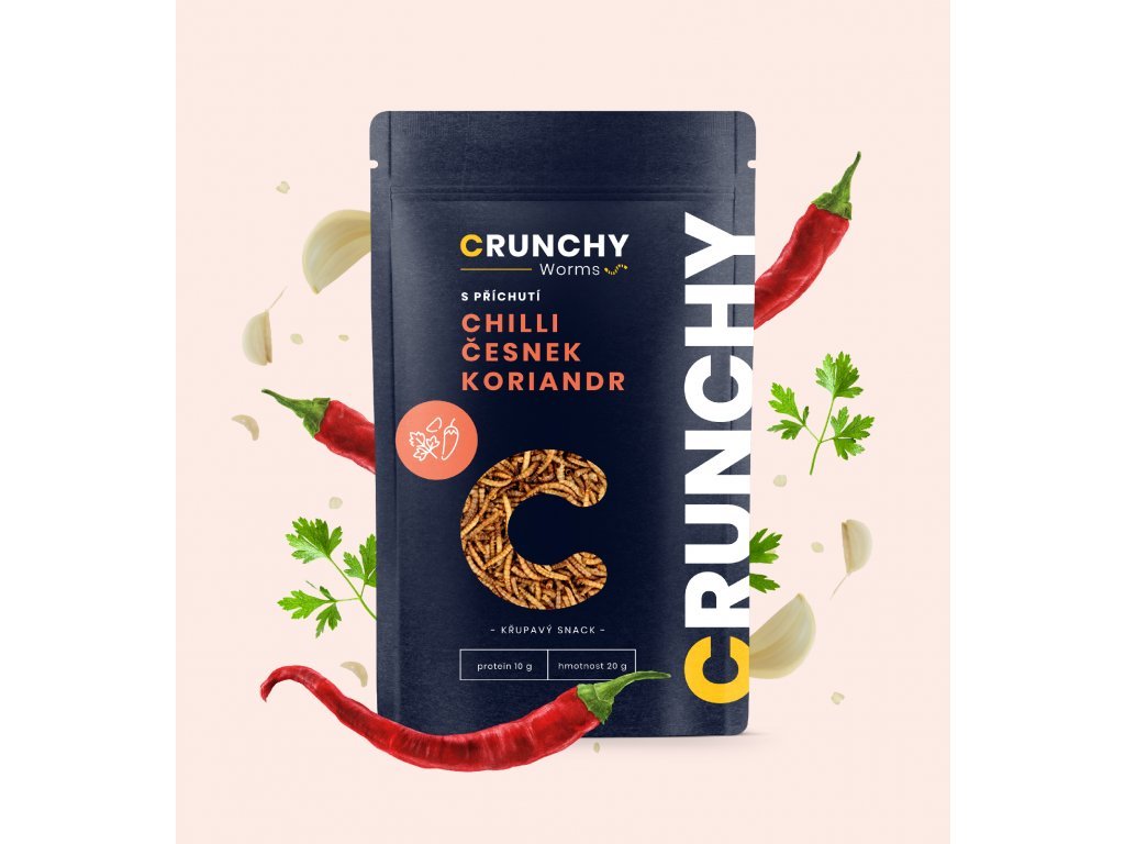 Crunchy Worms s příchutí CHILLI, ČESNEK A KORIANDR 20 g