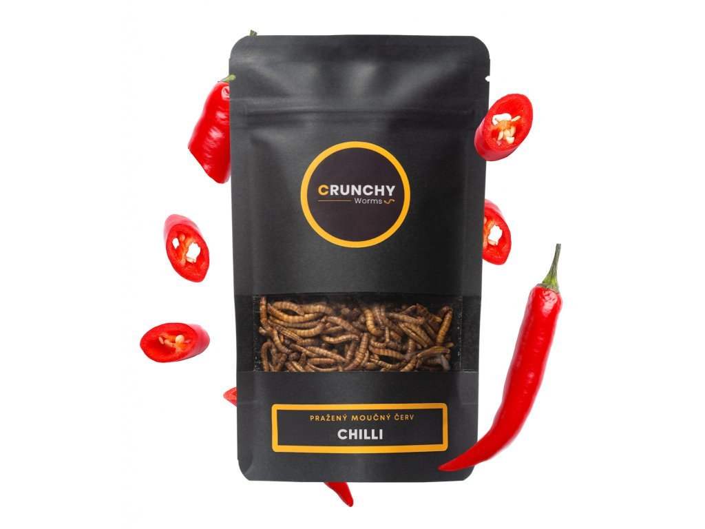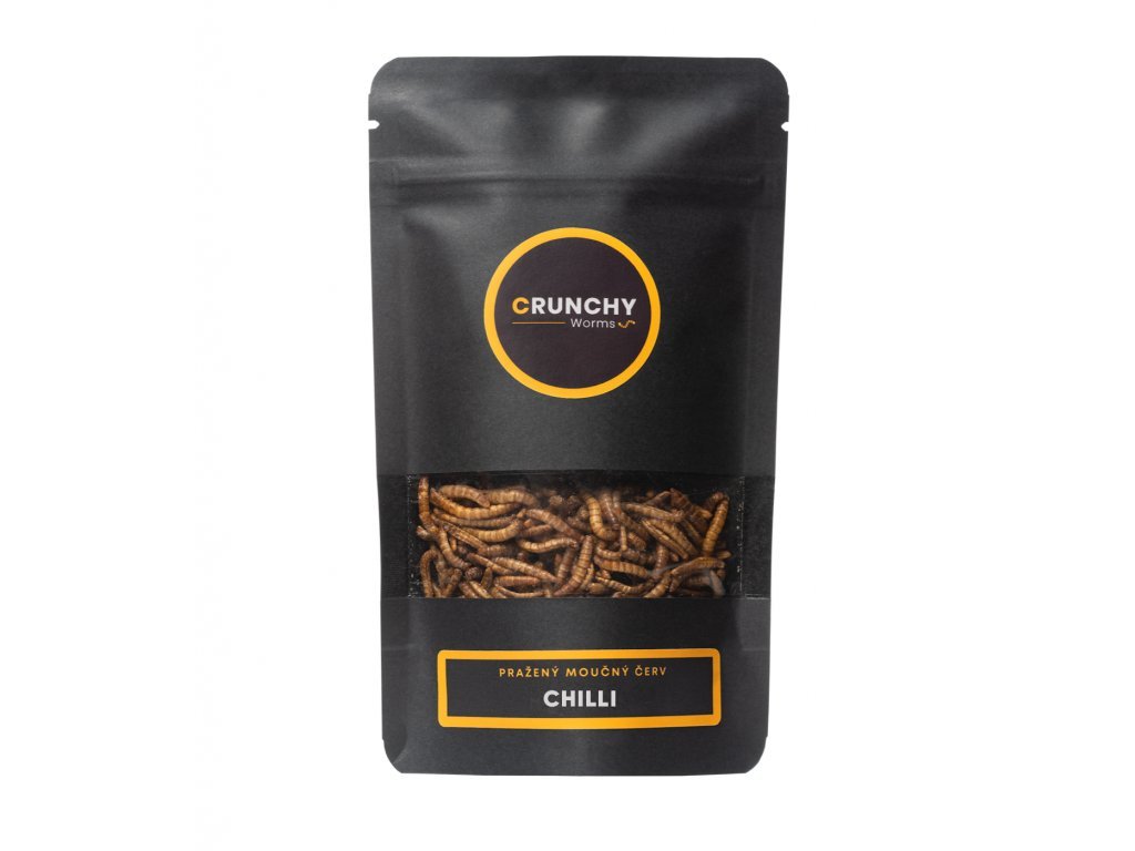 Pražení dochucení červíci připravení rovnou k jídlu! Otevřete pytlík a křoupete stejně jako oříšky nebo brambůrky. Kombinace chilli, čerstvého česneku a koriandru je výborná k...