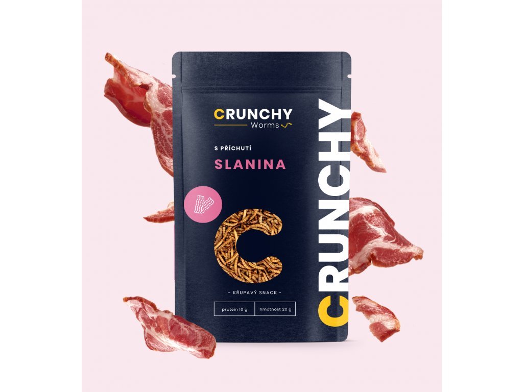 | SLOŽENÍ: | Larvy potemníka moučného (Tenebrio molitor) (97,5%), sůl (1%), dextroza, kukuřičná mouka, aroma: (slaninové: 0,5%, kouřové - obsahující SF 002; SF 005), sušená zelenina, látky zvýrazňující chuť a vůni: E 621,E 635; kvasniční extrakt, barvivo E 160c |