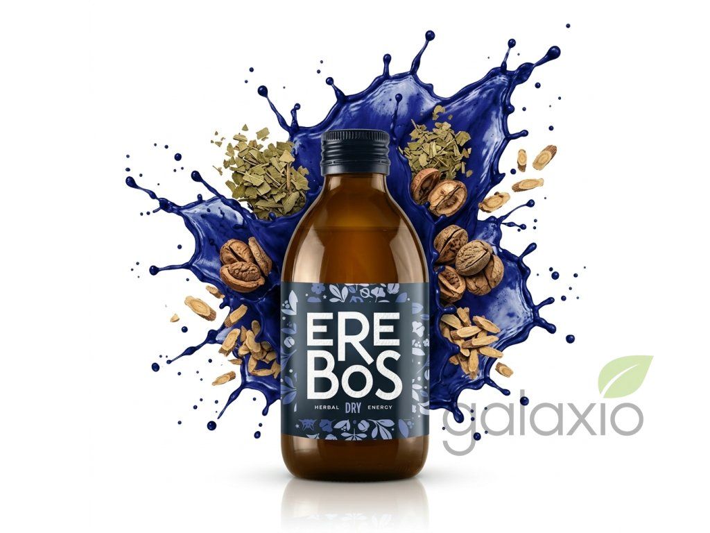 Výluh ze 7 bylin EREBOS (voda, maté, kola, guarana, kotvičník, mateřídouška, kozinec, maral), esence EREBOS DRY (přírodní aroma, výluh z bylin a koření), vitamín C, antioxidant: kyselina citronová . Neobsahuje konzervanty, barviva ani umělá aromata. Před vypitím důkladně protřepejte. Skladujte v chladu a temnu. Po otevření ihned spotřebujte. Sedimentace bylin je znakem přírodního charakteru nápoje. Nápoj s vysokým obsahem přírodního kofeinu (40 mg/100 ml) – není vhodný pro děti a těhotné nebo kojící ženy. Kofein pouze z bylin. Originální česká receptura.