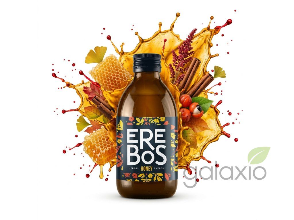 Výluh ze 7 bylin EREBOS (voda, maté, kola , guarana, kotvičník, mateřídouška, kozinec, maral), třtinový cukr, med (1%), esence EREBOS HONEY™ (přírodní aroma, výluh z bylin a koření), vitamín C, antioxidant: kyselina citronová . Neobsahuje konzervanty, barviva ani umělá aromata. Před vypitím důkladně protřepejte. Skladujte v chladu a temnu. Po otevření ihned spotřebujte. Sedimentace bylin je znakem přírodního charakteru nápoje. Nápoj s vysokým obsahem přírodního kofeinu (40 mg/100 ml) – není vhodný pro děti a těhotné nebo kojící ženy. Kofein pouze z bylin. Originální česká receptura.