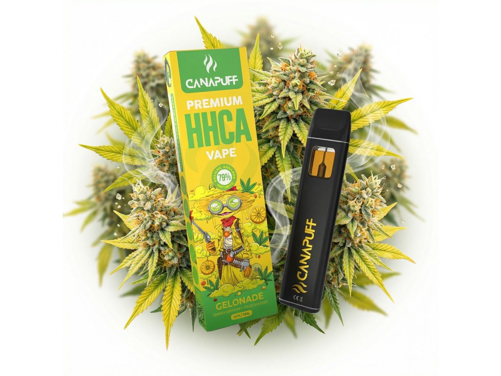 Canapuff HHC-A Vape Pen Gelonade 79% je citrusová bomba pro všechny, kdo chtějí povznášející, ale pořád ještě kultivovaný zážitek z HHC-A v maximálně pohodlné formě. Sladkokyselý terpenový profil Gelonade kombinuje pikantní citron připomínající přezrálý citrón s medově sladkou limonádou a jemným konopným podtónem, který dotváří komplexní, doslova „limonádový“ kush charakter. Uvnitř pera se skrývá 79% prémiového HHC-A destilátu (Hexahydrocannabinol Acetate), kanabinoidu známého silnějším, ale stále hladkým účinkem, který se pocitově pohybuje mezi klasickým HHC a THC. Nabízí vyvážený euforický pocit bez extrémního zahlcení, rychlý nástup, snadnou kontrolu intenzity a skvěle se hodí na večerní chill, kreativní práci nebo social vibe s partou. Pero má 1 ml náplně, kapacitu baterie kolem 350 mAh a vydrží přibližně 450 potahů, takže tě bez problému provede celou řadou session. V případě vybití stačí připojit USB-C kabel, dobít a pokračovat – žádné tankování, žádné cartridge, prostě plug & puff; po vypotřebování náplně zařízení ekologicky zlikviduj. Canapuff Gelonade 79% HHC-A patří do řady jednorázových vapek, které jsou laboratorně testované, s důrazem na kvalitu extraktu a absenci syntetických kanabinoidů, což ocení i náročnější „connoisseuři“. Pokud hledáš stylovou, diskrétní a chuťově výraznou vapku, která nabídne osvěžující citrusový boost a povznášející efekt, Gelonade je přesně ten kandidát, který ti rozzáří den jako limonáda na ledu. Produkt v souladu se zákonem §5 č. 167/1998. Určeno k účelům průmyslovým, technickým a zahradnickým. Není určeno k přímé konzumaci nebo kouření. Produkt podléhá přirozenému úbytku hmotnosti. Zákaz prodeje mladším 18-ti let. Uchovávejte mimo dosah dětí.Doplňkové parametry