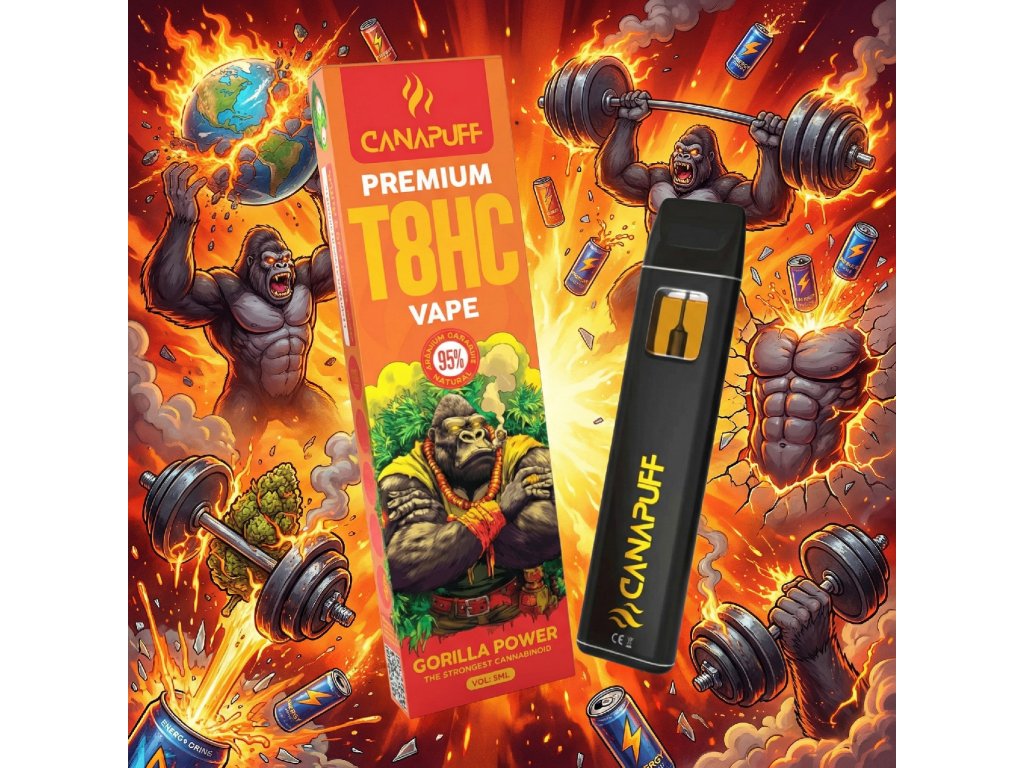 Canapuff T8HC Vape Gorilla Power 1 ml je jednorázový T8HC vaporizér navržený pro momenty, kdy chceš opravdu „nakopnout“ hlavu i tělo a zároveň si udržet klidnou, stabilní rovinu. T8HC (tetra‑8‑hydrocannabinol) je pokročilý kanabinoid nové generace, který vzniká precizní úpravou přírodních sloučenin a nabízí vyvážený profil – od jemné euforie přes soustředění až po hlubokou relaxaci bez přetížení mysli. Profil Gorilla Power je hutný a intenzivní: ovocně‑zemitý základ doplňuje citrusový „spark“ a borovicově pryskyřičný tón, který dodává chuti tvrdší, přímočarý charakter. Každý potah působí jako příval síly a energie, ale zároveň udržuje pocit uvolnění, takže se hodí jak na večerní vypnutí, tak na „power“ chvíle, kdy potřebuješ zůstat v klidu, ale ne úplně vypnout. Jednorázový Canapuff T8HC vape je přenosný, nenápadný a díky deklarované 95% čistotě T8HC, laboratornímu testování a výrobě v EU podle evropských norem míří na uživatele, kteří chtějí jistotu kvality a stabilního složení. Podle informací výrobce mají produkty obsah THC = 0%, u květů do 0,2%, takže splňují limity pro technické konopí; Gorilla Power je tak ideální sběratelský/dekorační kousek pro fanoušky silných, energických T8HC profilů. Produkt v souladu se zákonem §5 č. 167/1998. Určeno k účelům průmyslovým, technickým a zahradnickým. Není určeno k přímé konzumaci nebo kouření. Produkt podléhá přirozenému úbytku hmotnosti. Zákaz prodeje mladším 18-ti let. Uchovávejte mimo dosah dětí.Doplňkové parametry