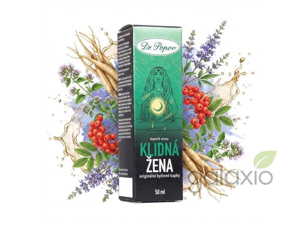 Kdy se vám budou bylinné kapky Klidná žena hodit: Dámy, nalezněte svou vnitřní rovnováhu a sílu s kapkami Klidná žena . Jeřáb přispívá k osvěžení těla a zvládnutí stresu a námahy . Šatavari podporuje ženský pohlavní systém a duševní pohodu . Dobromysl zklidňuje mysl , zlepšuje spánek a dobrou náladu . Drmek, kontryhel a řebříček podporují menstruační komfort a hormonální rovnováhu . Složení vhodně doplňuje andělika, skvělá ženská bylinka. Klidná žena je vaším spojencem pro harmonii těla i mysli. Jak bylinné kapky vyrábíme? Pečlivě vybrané atestované byliny macerujeme v jemném 60% potravinářském lihu za studena – jedná se o způsob výroby, který je generacemi ověřený jako nejlepší , protože líh je pro extrakci ideální a kapky pak mají vysokou koncentraci účinných látek. Líh navíc doplňujeme vodou, takže v kapkách působí dva činitelé a vyluhuje se tedy i více účinných látek. Využíváme odstřeďování za vysoké rychlosti otáček, abychom z bylin získali více účinných látek. Dlouhá macerace mikronizovaných (jemně rozemletých) bylin v lihu je velmi důležitá a tento proces nelze porovnávat s prostým rozmícháním extraktu. Všechny směsné bylinné kapky Dr. Popova vycházejí z originálních receptur , které zaručují vysokou účinnost výsledné tinktury. Používání bylinných kapek Dr. Popova je velmi snadné. 1 kapka na 1 kg tělesné hmotnosti na den, rozdělit na 3 dávky během dne. Tinkturu můžete nakapat i do nápoje, např. vody nebo čaje. Denní dávka 60 kapek při tělesné hmotnosti 60 kg obsahuje 19,91 mg extraktu ze všech obsažených bylin. Nepřekračujte doporučenou denní dávku. Není určeno jako náhrada pestré stravy. Výrobek není určen pro děti, těhotné a kojící ženy. Ukládejte mimo dosah dětí. Před použitím protřepat, lehký zákal není na závadu. Uchovejte v suchu při teplotě 5-25 °C. Složení: voda, jemný kvasný líh (alk. 40% obj.), jeřáb plod, drmek plod, kontryhel nať, šatavari kořen, dobromysl nať, řebříček nať, andělika kořenDoplňkové parametry