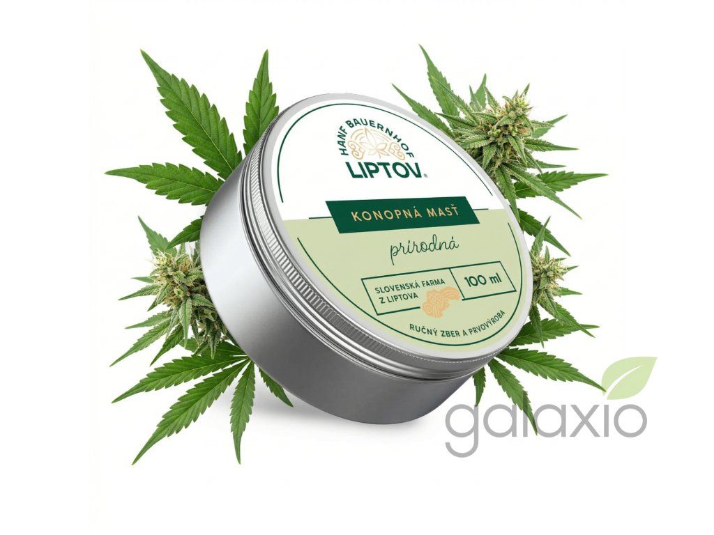 Konopná mast prémium 100 ml z Konopné farmy Liptov je poctivý přírodní balzám na pokožku vyrobený z konopného oleje a sušiny pěstované na čistých půdách pod Tatrami bez chemického ošetření. Díky vysokému podílu konopí a konopného oleje, doplněnému o bambucké máslo a včelí vosk, pomáhá mast intenzivně zvlhčovat, vyživovat a regenerovat pokožku při celé řadě kožních potíží, jako je suchost, popraskaná kůže, lokální podráždění či zarudnutí. Pravidelné používání masti podporuje přirozenou obranyschopnost kůže, zklidňuje nepříjemné pocity pnutí a svědění a přináší dlouhodobý komfort i namáhaným partiím, jako jsou ruce, lokty, nohy či oblast kloubů. Receptura je založena pouze na přírodních ingrediencích bez syntetických barviv a parfemace a je šlehaná do jemné, snadno roztíratelné struktury, která se rychle vstřebává a zanechává na pokožce příjemný ochranný film. Mast je vhodná pro lokální péči o drobné nedokonalosti pleti i pro každodenní ošetření suchých míst, a ocení ji každý, kdo hledá poctivý farmářský produkt s důrazem na kvalitu, jednoduché složení a maximální efekt pro pokožku. Bezpečnost a skladování: Nepoužívejte v případě citlivosti na jakoukoli složku. Před prvním použitím naneste malé množství na pokožku a v případě podráždění, pálení, vyrážky nebo alergické reakce produkt dále nepoužívejte. Mast uchovávejte při pokojové teplotě, na suchém místě, mimo zdroje tepla a přímého slunečního záření, nejlepší spotřebovat do 12 měsíců od data výroby uvedeného na obalu; výrobcem je Konopná farma Liptov, s.r.o., Liptovský Mikuláš. Doplňkové parametry