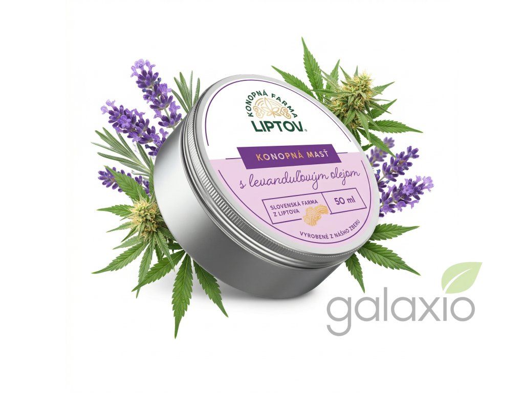 Konopná mast BIO PREMIUM levandule 50 ml z rodinné Konopné farmy Liptov spojuje sílu konopí a levandule v luxusně našlehané masti, jejíž výroba trvá celé 4–5 dní. Základ tvoří bambucké máslo, konopný olej, konopná sušina, včelí vosk a kvalitní levandulový olej – bez ropných derivátů a zbytečné chemie, s důrazem na maximální efekt a šetrnost k pokožce. Díky vysokému procentu konopí a konopného oleje pomáhá mast zvlhčovat a regenerovat pokožku téměř u všech kožních problémů: psoriázy, různých vyrážek, akné, oparů, ekzémů, bodnutí hmyzem, ale také u křečových žil, bércových vředů či hemoroidů. Levandulový olej dodává masti silné zklidňující, antiseptické i regenerační účinky, takže pokožku nejenom vyživuje, ale zároveň ji krásně zjemní a provoní – ideální pro večerní rituály, péči po opalování nebo uklidnění podrážděných míst. Mast je vyrobená z konopného oleje a sušiny pěstovaných na čistých půdách pod Tatrami bez chemického ošetření, obsahuje velké procento konopí a jde o poctivý domácí farmářský produkt přímo od prvovýrobce. Na konci výroby se ještě šlehá, aby byla dosažena co nejvyšší jemnosti a příjemného pocitu na pokožce. Použití: nanes tenkou vrstvu masti na čistou pokožku a jemně ji vmasíruj do postiženého místa, ideálně jednou denně; aplikuj lokálně maximálně na 10% povrchu těla (např. část zad, ruka, noha). Mast se skvěle hodí na suché a šupinaté partie, ložiska ekzému či lupénky, aknózní místa, jizvy, opary i podrážděnou pokožku po slunění – z Konopné farmy Liptov tak do koupelny přinášíš kousek poctivého Tater wellness v malé plechovce. Bezpečnost a skladování: Nepoužívejte v případě citlivosti na jakoukoli složku. Před prvním použitím naneste malé množství na pokožku a v případě podráždění, pálení, vyrážky nebo alergické reakce produkt dále nepoužívejte. Mast uchovávejte při pokojové teplotě, na suchém místě, mimo zdroje tepla a přímého slunečního záření, nejlepší spotřebovat do 12 měsíců od data výroby uvedeného na obalu; výrobcem je Konopná farma Liptov, s.r.o., Liptovský Mikuláš. Doplňkové parametry