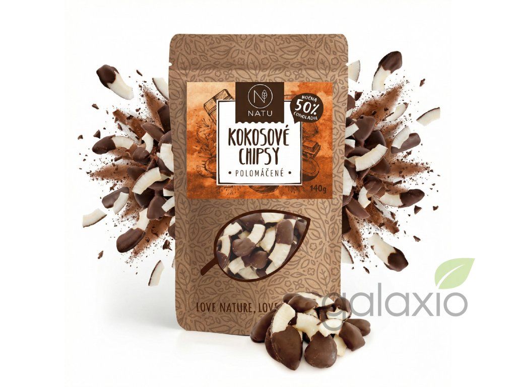 NATU - Kokosové chipsy polomáčené 50% hořká čokoláda 140g