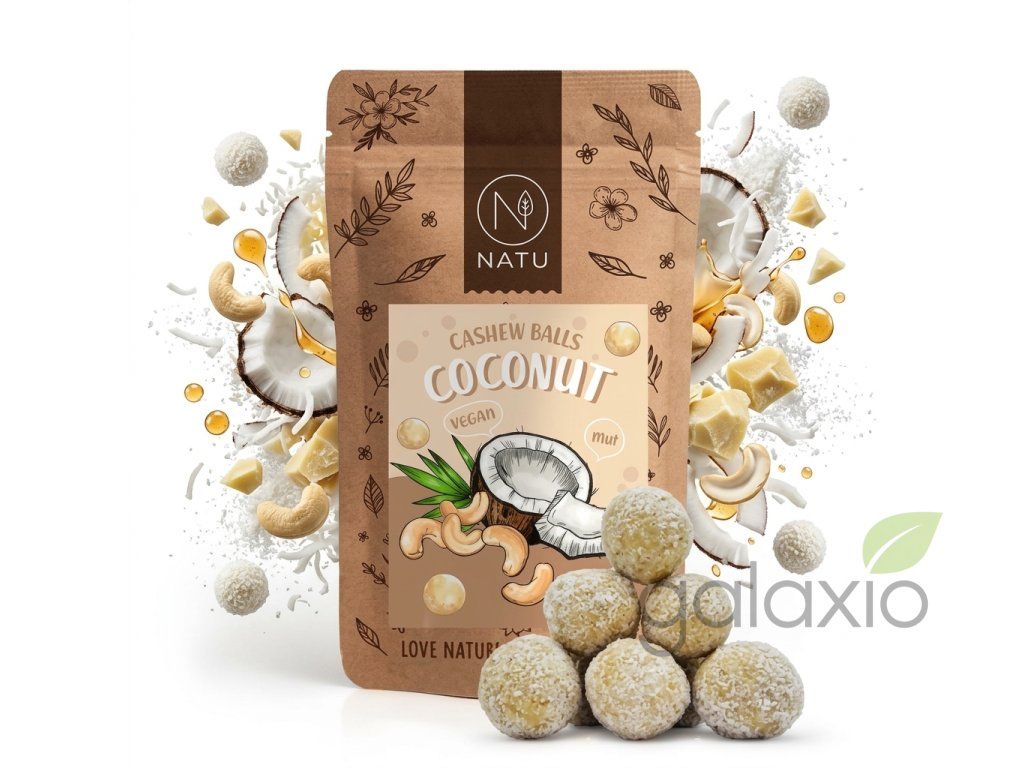 Znáte ten pocit, když si dáte kokosovou pralinku Raffaello a chcete hned další? NATU Kokosové kuličky s kešu krémem přinášejí přesně ten zážitek – jen bez zbytečného cukru, palmového oleje a umělých přísad. Srdce každé kuličky tvoří 53% sametově jemného kešu krému doplněného o lahodné kakaové máslo – základna, která zajišťuje tu charakteristicky krémovou, rozplývavou texturu. Kokos se zde neobjevuje jen jednou – je zašitý přímo v těstě ve formě 9% strouhaného kokosu a celé finální obalení kuličky dotváří vrstva jemně mletého kokosu, která dodává strukturovaný povrch a luxusní sněhobílý vzhled. Sladkost nepochází z rafinovaného cukru, ale z 19% kokosového nektaru – přírodního sladidla získávaného z okvětí kokosových palem s nižším glykemickým indexem než běžný cukr. Chuť dotváří aromatická Bourbon vanilka a jemná himalájská růžová sůl. Výsledkem je intenzivní kokosová chuť a vůně, kterou ucítíte ještě dlouho po posledním soustu. Díky šetrnému RAW zpracování zůstávají kuličky měkké, vláčné a plné živin – žádná tepelná úprava, která by ochudila složení i chuť. Balení obsahuje 10 kuliček , které se snadno vejdou do kabelky, batohu nebo si je prostě nechte na stole ke kávě. Proč si zamilujete tyto kuličky: RAW zpracování – zachovány všechny živiny a přirozená chuť Inspirováno Raffaello – ale 100% přírodně a bez chemie Slazeno kokosovým nektarem – bez rafinovaného cukru Vegan, bez lepku, bez SO₂, bez laktózy Dvojitá kokosová dávka – uvnitř i na povrchu Praktické balení 10 ks na cesty, do práce i do školy Doplňkové parametry