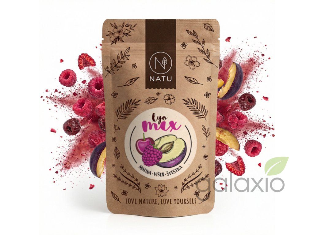 NATU Lyo mix malina a višeň 35 g je šťavnatá směs malin, višní a švestek sušených mrazem, díky čemuž si ovoce zachovává původní barvu, tvar, plnou chuť i většinu vitamínů a antioxidantů. Lyofilizace zbaví plody vody, ale zachová jejich nutriční hodnotu, takže získáš ultra křupavou svačinu, která chutná jako čerstvé ovoce, jen bez zbytečné zátěže. Mix je 100% ovoce, bez přidaného cukru, aromat, barviv a konzervantů, proto skvěle zapadne do zdravého životního stylu, dětského jídelníčku i fitness režimu. Hodí se do snídaňových kaší, jogurtů, granoly, domácích dezertů, smoothies nebo jen tak „z pytlíku“, když potřebuješ rychlou energii a něco sladkého bez výčitek. Lehké 35g balení je praktické na cestování, do práce, do školy i na sport – snadno ho přibalíš do batohu a máš po ruce porci ovocné chuti kdykoli během dne. Lyo mix malina a višeň je skvělou volbou pro všechny, kteří hledají kvalitní lyofilizované ovoce s výraznou chutí, minimálním zpracováním a maximem přírodních benefitů. Doplňkové parametry