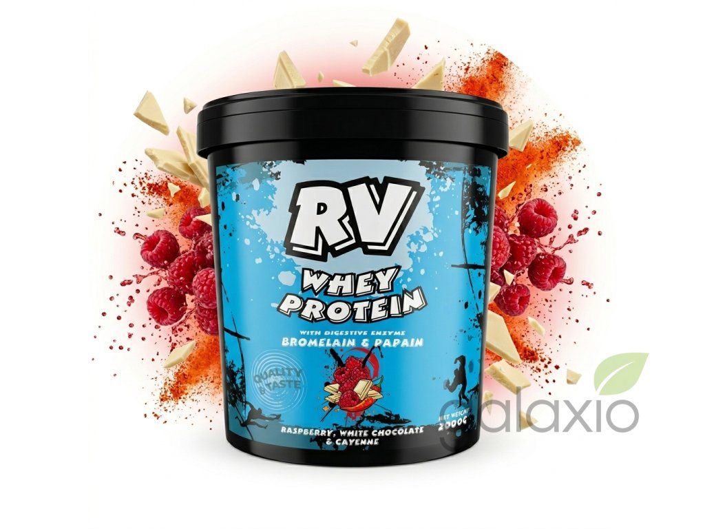 Protein pro odvážné — sladký, ovocný a s ohněm v závěru Ne každý protein si dovolí kombinaci, jako je bílá čokoláda, malina a kajenský pepř. RV Whey Protein v této příchuti nabízí vícevrstvý chuťový zážitek — nejprve hedvábná sladkost bílé čokolády, pak svěží ovocná kyselost zralých malin a nakonec jemný, hřejivý tah kajenského pepře, který protřepe smysly a nastartuje metabolismus. Čisté složení, maximální výsledky Základ tvoří 97,6% koncentrátu syrovátkové bílkoviny — plnohodnotný zdroj esenciálních aminokyselin a BCAA nezbytných pro svalový růst a rychlou regeneraci po náročném tréninku. Bez zbytečných plnidel, bez kompromisů. Stejně jako celá série RV Whey Protein, i tato příchuť obsahuje trávicí enzymy bromelain a papain — přírodní enzymatickou podporu, která štěpí bílkoviny na snáze vstřebatelné peptidy a šetří tvé trávení i při vyšších denních dávkách. Sladkost zajišťuje sukralóza bez kalorií, konzistenci pak spolehlivá xanthanová guma pro hebký, hrudkový shake. Pro koho je tato příchuť ideální? Milovníky netradičních chutí , kteří se nudí klasickými proteiny Sportovce s citlivým trávením — enzymy bromelain a papain to zvládnou za tebe Každého, kdo chce přidat šmrnc do svého každodenního doplňování bílkovin Fitness nadšence hledající kvalitu i zábavu v jedné odměrce Jak správně používat? Rozmíchej 2 odměrky (30 g) ve 250 ml studené vody nebo mléka . Konzumuj 1–3 dávky denně podle aktuální potřeby — nejlépe po tréninku, ráno nebo jako výživná svačina. Balení 2 kg ti vydrží na celé týdny bez starostí o doplnění zásoby. Upozornění: Doplněk stravy — nenahrazuje pestrou a vyváženou stravu. Nepřekračuj doporučené dávkování. Není určeno dětem do 15 let. Skladuj na suchém místě mimo dosah tepla a přímého slunce.Doplňkové parametry