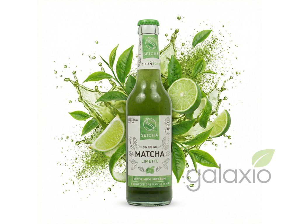 Perlivá limonáda s příchutí čaje Matcha s grapefruitem.
