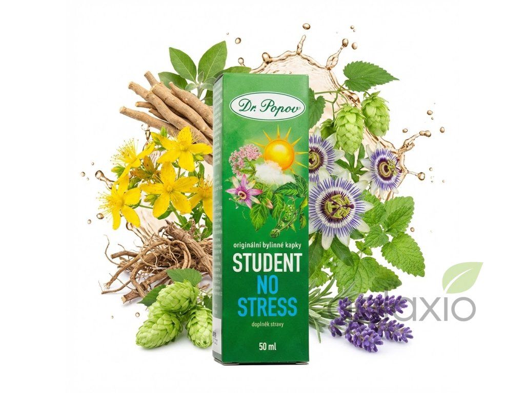 Kdy se vám budou bylinné kapky STUDENT No stress hodit: Originální studentské bylinné kapky Dr. Popova No stress ti pomůžou zahnat strach a nervozitu před náročnou zkouškou a pomohou ti lépe usnout , pokud se nevalně převaluješ v posteli. Psychická pohoda a zdravý spánek jsou pro spokojenější život nezbytné a stejně tak pro proces učení a ukládání informací do mozku. Takže žádný stres, tyto kapky jsou tu pro tebe. Kozlík, mučenka, ashwagandha a levandule redukují stres . Meduňka a třezalka podporují duševní zdraví a relaxaci . Chmel se postará o zdravý spánek . Jak bylinné kapky vyrábíme? Pečlivě vybrané atestované byliny macerujeme v jemném 60% potravinářském lihu za studena – jedná se o způsob výroby, který je generacemi ověřený jako nejlepší , protože líh je pro extrakci ideální a kapky pak mají vysokou koncentraci účinných látek. Líh navíc doplňujeme vodou, takže v kapkách působí dva činitelé a vyluhuje se tedy i více účinných látek. Využíváme odstřeďování za vysoké rychlosti otáček, abychom z bylin získali více účinných látek. Dlouhá macerace mikronizovaných (jemně rozemletých) bylin v lihu je velmi důležitá a tento proces nelze porovnávat s prostým rozmícháním extraktu. Všechny směsné bylinné kapky Dr. Popova vycházejí z originálních receptur , které zaručují vysokou účinnost výsledné tinktury. 1 kapka na 1 kg tělesné hmotnosti na den, rozdělit na 3 dávky během dne. Tinkturu můžete nakapat i do nápoje, např. vody nebo čaje. Denní dávka 60 kapek při tělesné hmotnosti 60 kg obsahuje po 19,91 mg extraktu ze všech obsažených bylin. Nepřekračujte referenční hodnotu příjmu. Není určeno jako náhrada pestré stravy. Výrobek není určen pro děti, těhotné a kojící ženy. Ukládejte mimo dosah dětí. Před použitím protřepat, lehký zákal není na závadu. Uchovejte v suchu při teplotě 5-25 °C. Složení: voda, jemný kvasný líh (alk. 40% obj.), kozlík kořen, mučenka nať, ashwagandha kořen, levandule květ, třezalka nať, meduňka nať, chmel šišticeDoplňkové parametry