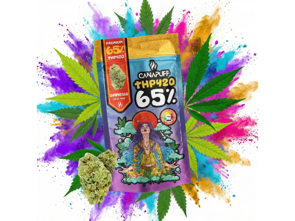 THP420 je kanabinoid svými účinky podobný delta‑9 THC a je prezentován jako jedna z nejlepších možných náhrad za již zakázané produkty, vyráběný výhradně společností Canapuff. Zákazníci si ho oblíbili pro velmi příjemnou chuť, účinnost a podobnost s D9 THC, přičemž produkt podle výrobce nemá žádné negativní účinky při kouření. THP420 Květy Amnesia 65% přinášejí poutavé spojení chutí, které rozvíří smysly – bohatá kořeněná směs, ve které se koření, černý pepř a bylinné esence spojují do tance a vytvářejí omamný zážitek s každým nádechem. Tato směs není pouze o odvážných chutích, ale představuje složitý souzvuk tepla a chladu: kořeněná chuť zkombinovaná s osvěžujícím dotekem fenyklu, vše zahalené do sladké, plynné mlhy, zatímco jasný podtón terpinolenu zajišťuje harmonickou rovnováhu po celou dobu profilu. THP420 Květy od Canapuff jsou pečlivě pěstovány a vybírány s důrazem na kvalitu a čistotu, aby poskytly optimální zážitek. Premium Canapuff květy se vyznačují intenzivním aromatem, obsahem vybraných kanabinoidů a jsou navržené tak, aby splnily očekávání i těch nejnáročnějších uživatelů, kteří hledají vysoce kvalitní konopné produkty pro relaxaci a pohodu. Produkt v souladu se zákonem §5 č. 167/1998. Určeno k účelům průmyslovým, technickým a zahradnickým. Není určeno k přímé konzumaci nebo kouření. Produkt podléhá přirozenému úbytku hmotnosti. Zákaz prodeje mladším 18-ti let. Uchovávejte mimo dosah dětí.Doplňkové parametry